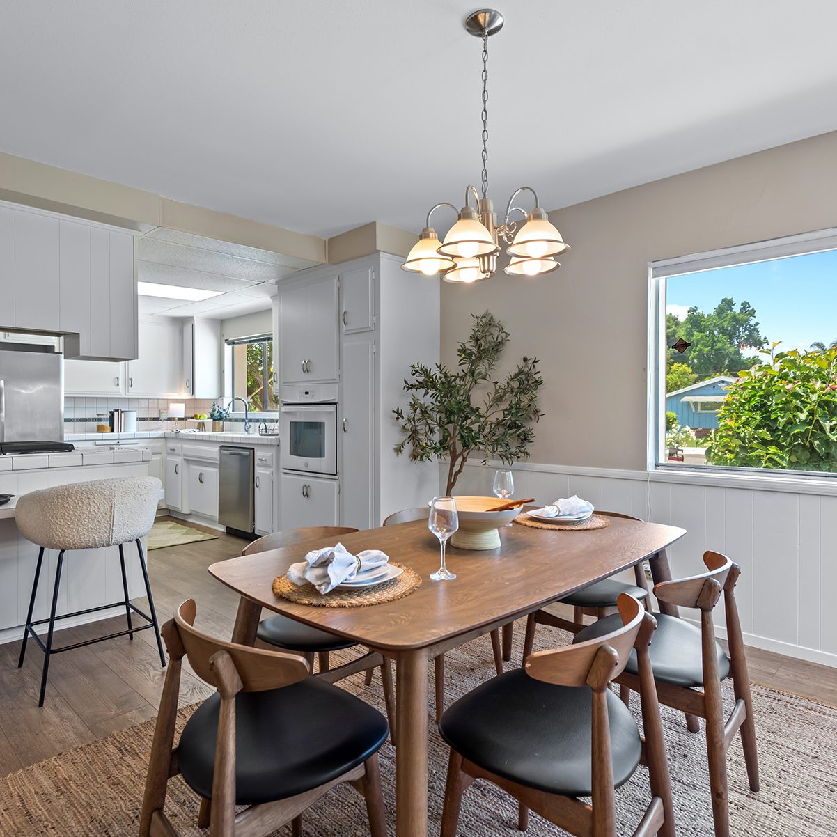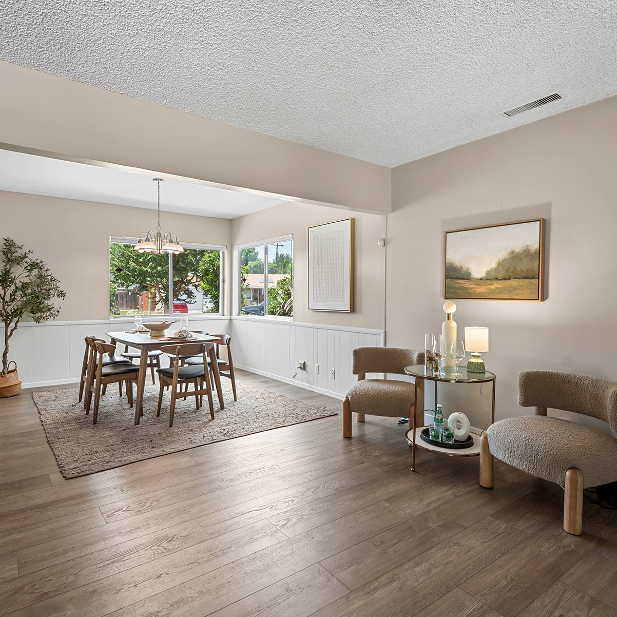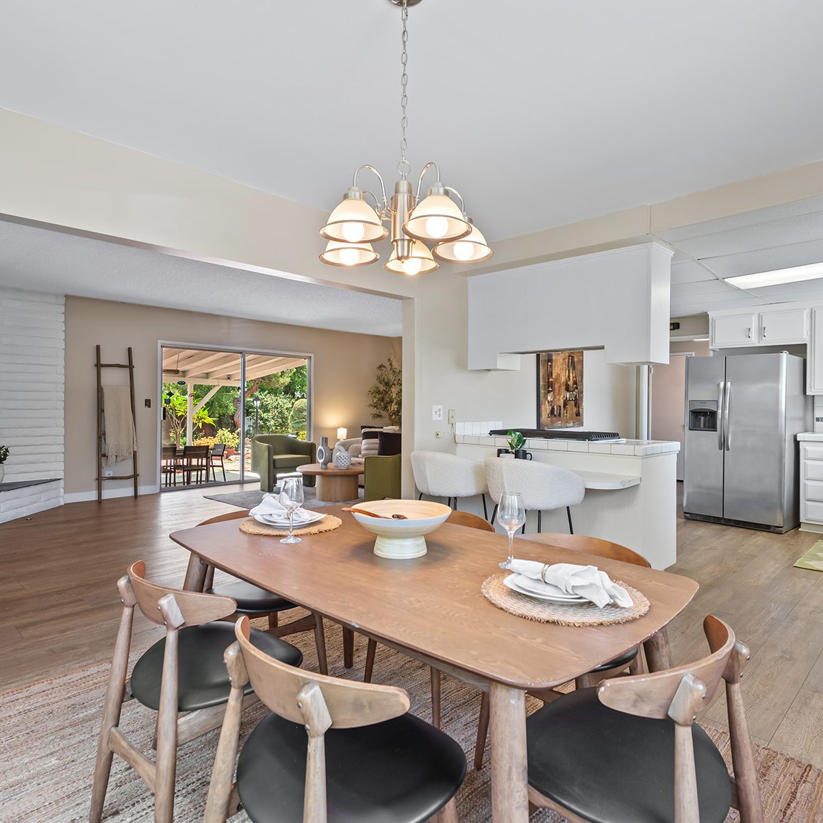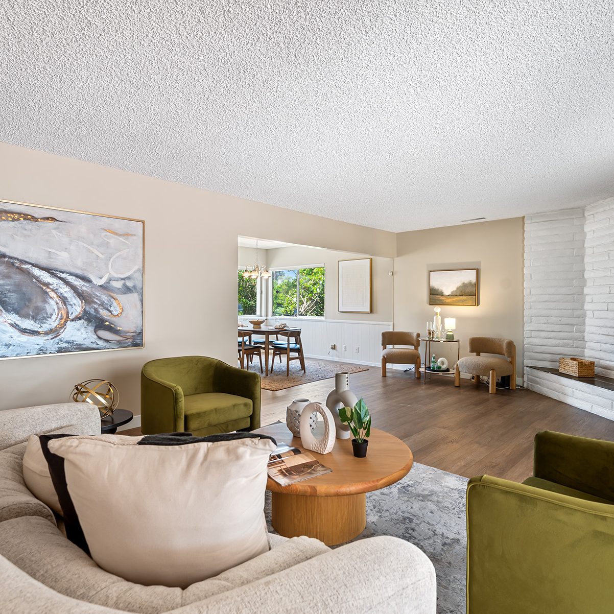 Sliding doors from the living area extend the living space to the outdoor patio, making it ideal for seamless indoor-outdoor entertaining. The expansive backyard is a true haven with a diverse array of mature trees, including delicious orange, lemon, guava, and Asian apple varieties. A shaded patio cover provides the perfect setting for al fresco dining. Multiple sitting areas throughout the yard encourage creative use of the large outdoor space.